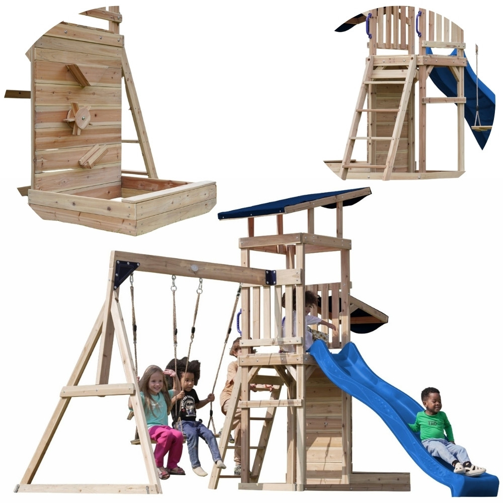 AXI Drewniany Duży Plac Zabaw Huśtawki Zjeżdżalnia Wieża + Piaskownica