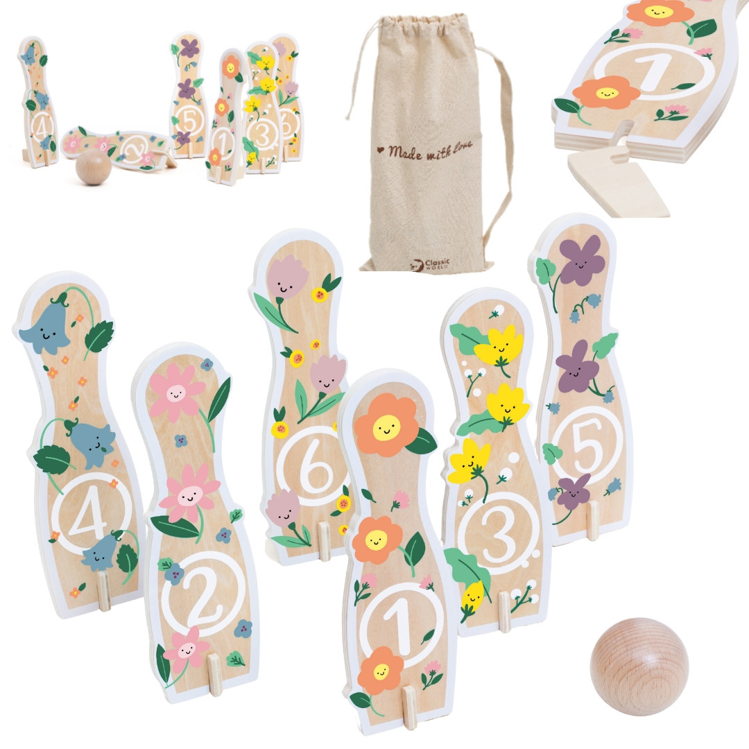CLASSIC WORLD Wooden Bowling Game for Children 6 pcs + Ball