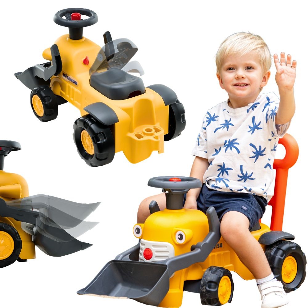 FALK prezentuje uroczy traktor Komatsu, który został zaprojektowany, aby towarzyszyć dzieciom od 1 do 3 roku życia. Ten wyjątkowy jeździk łączy w sobie tradycję i nowoczesność, będąc hołdem dla 75 lat doświadczenia marki. Wyprodukowany w 100% we Francji, z myślą o ekologii, składa się w co najmniej 90% z plastiku pochodzącego z recyklingu. Pojazd wyposażony jest w pełni funkcjonalną przednią łyżkę, którą maluch może sterować, oraz kierownicę z klaksonem, co zapewnia mnóstwo frajdy podczas zabawy. Dzięki ergonomicznej rurce (oparciu), zabawka pełni również funkcję pchacza, wspierając dziecko w stawianiu pierwszych kroków i rozwijaniu równowagi.