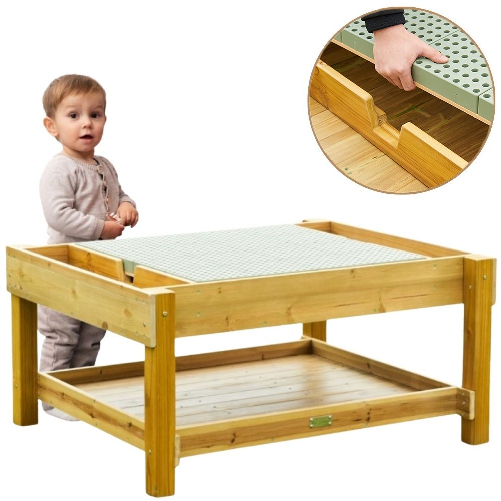 Solidny, drewniany stół edukacyjny STEM stworzony z myślą o kreatywnej zabawie na świeżym powietrzu od marki Masterkidz, łączy naukę z ruchem, eksperymentowaniem i świetną zabawą dla dzieci od 3. roku życia. Dzięki perforowanej powierzchni górnej i praktycznej półce dolnej, oferuje niemal nieograniczone możliwości konstrukcyjne i badawcze. Wykonany z impregnowanego drewna, jest odporny na warunki atmosferyczne, pleśń, wilgoć oraz promieniowanie UV. To idealne centrum zabawy, które rozwija ciekawość świata i zachęca dzieci do wspólnego odkrywania nauki.
