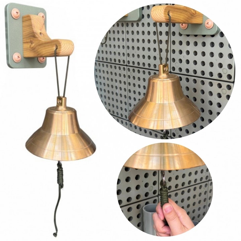 • Prawdziwy dzwonek wykonany z brązu (nie plastik!) osadzony na solidnym, drewnianym wsporniku.