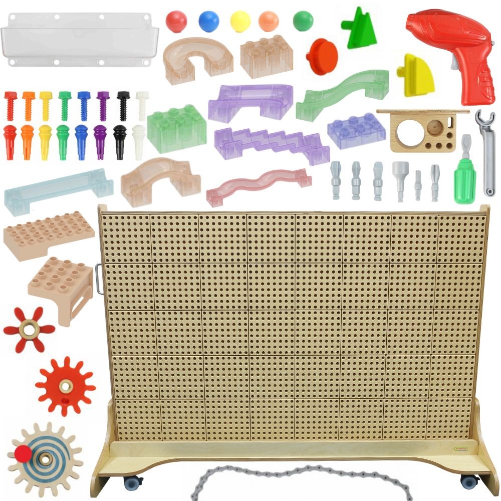 MASTERKIDZ Wolnostojąca Tablica Ściana STEM + Akcesoria Kołki Tace Klocki Narzędzia