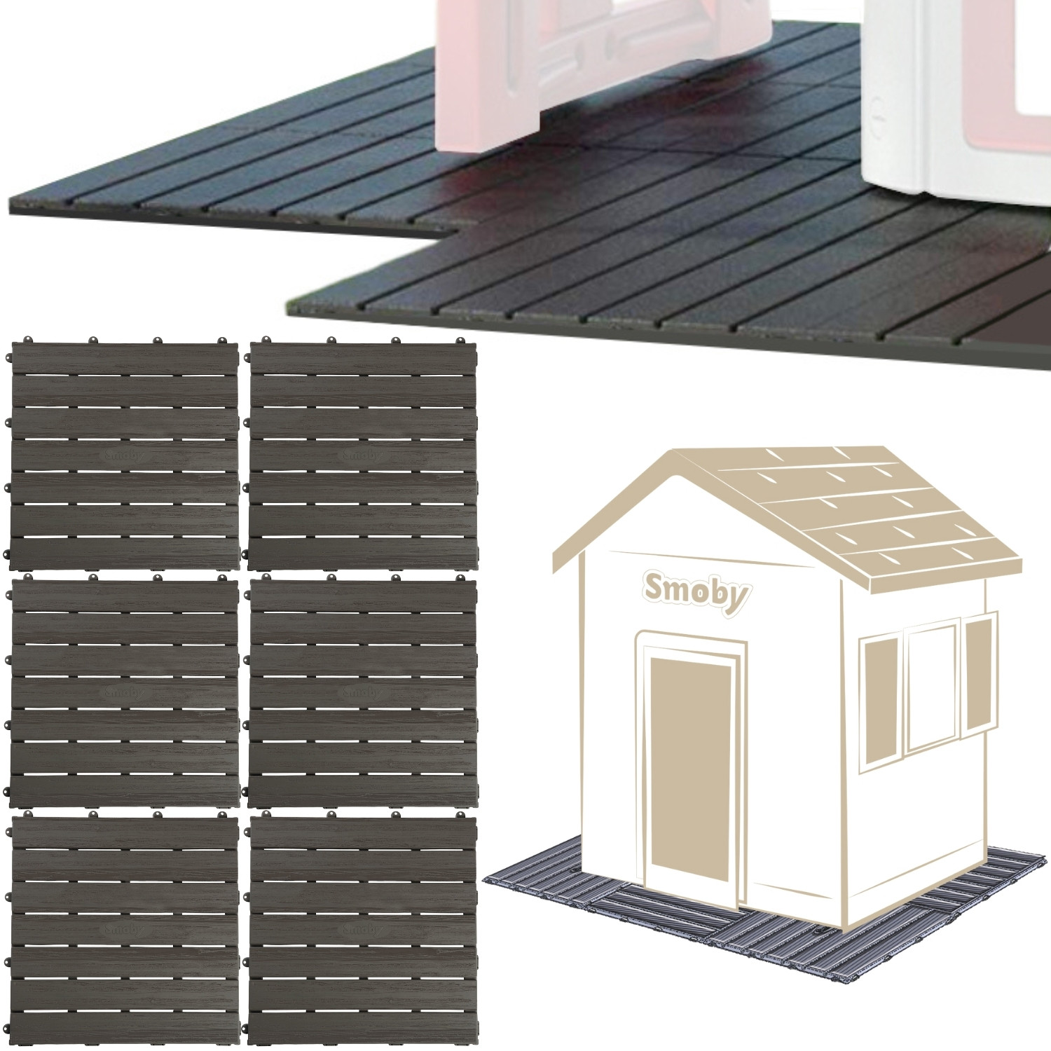 Płytki – panele podłogowe do domku ogrodowego od cenionego francuskiego producenta zabawek dla dzieci firmy Smoby. Panele podłogowe do domku ogrodowego. Panele zostały dostosowane do wszystkich domków. Zestaw składa się z 6 płytek o wymiarach: 45 x 45 cm.