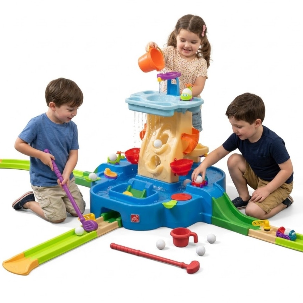Zapewnij swojemu dziecku mnóstwo aktywnej zabawy ze stolikiem wodnym z wbudowanym torem do mini golfa od marki Step2! Zestaw gwarantuje wielogodzinną zabawę w słoneczne dni pobudzając aktywność fizyczną dziecka i dając przy okazji ochłodę dzięki swojej funkcjonalności. Dzieci mogą w dowolny sposób podpinać tory do stolika, zmieniając ich układ za każdym razem. Dzięki temu, tworząc nowe trasy zabawa nigdy się nie znudzi. Młodsze dzieci ćwiczą cel a starsze, dzięki zwiększaniu trudności doskonalą swoją technikę. Otwarta 360 stopniowa konstrukcja pozwala na zabawę z każdej strony, idealnie nadaje się do wspólnej zabawy w większym gronie.
