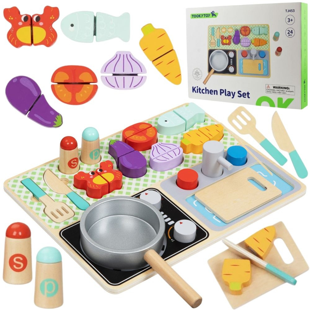 TOOKY TOY Drewniana Kuchnia z Akcesoriami – Zestaw Małego Kucharza