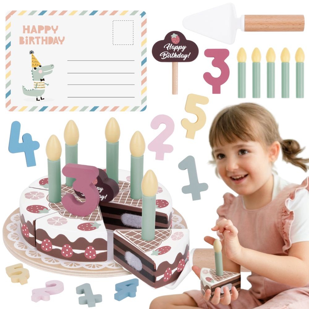 Wprowadź magię urodzinowego przyjęcia do pokoju swojego dziecka dzięki przepięknemu, drewnianemu tortowi od Tooky Toy! Ten przepiękny zestaw pozwala na wielokrotne „krojenie” i serwowanie słodkości, dzięki czemu maluch może poczuć się jak prawdziwy mistrz cukiernictwa. Zabawa w przygotowywanie przyjęcia to nie tylko ogromna frajda, ale także naturalny sposób na naukę dzielenia się i budowanie relacji z rówieśnikami. Dzięki elementom łączonym na rzepy, każde cięcie wydaje satysfakcjonujący dźwięk, który zachęca do dalszego odkrywania i doskonalenia precyzji ruchów. To bezpieczna, ekologiczna i ponadczasowa zabawka, która zamieni zwykłe popołudnie w niezapomnianą celebrację pełną uśmiechu.