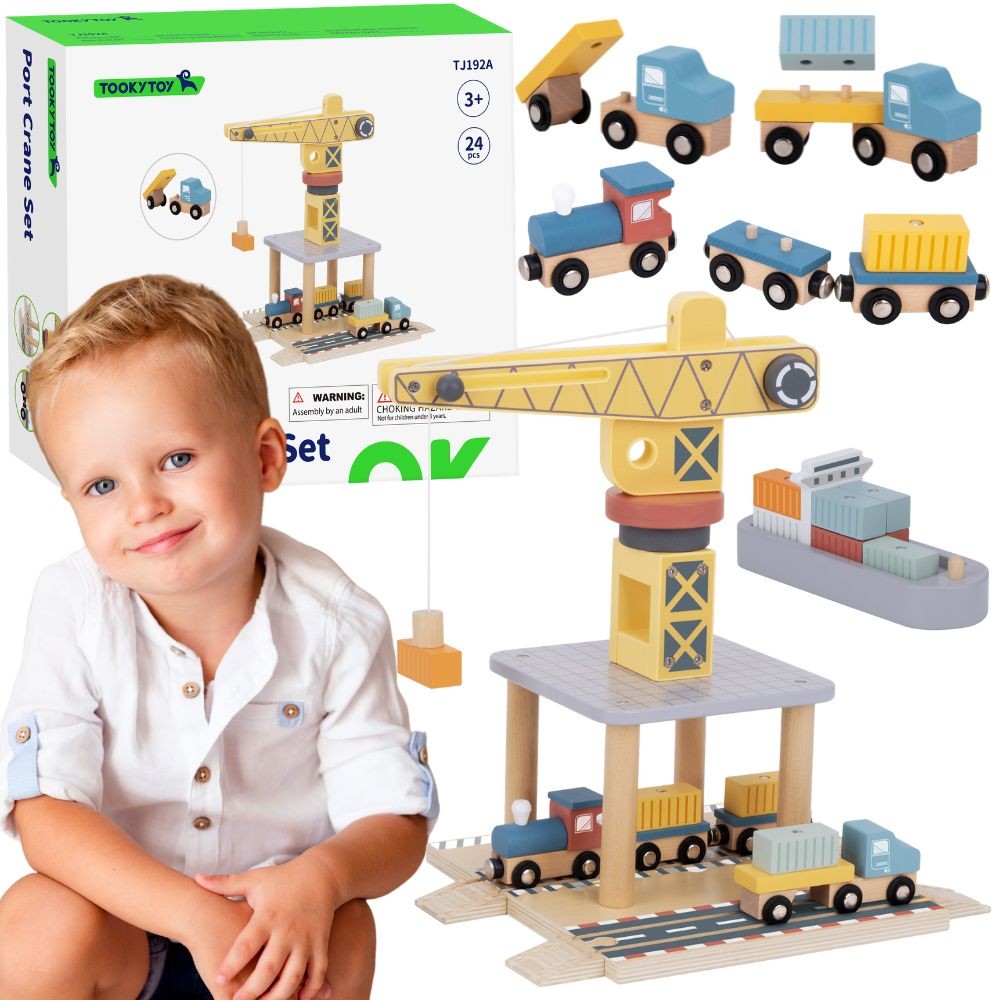 TOOKY TOY Dźwig Portowy Drewniany Zestaw