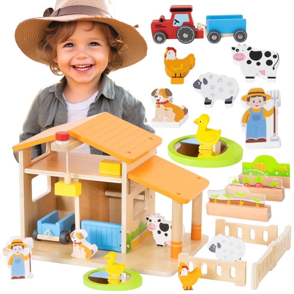 VIGA Drewniana Farma Dom Farmera Z Ogródkiem I Traktorem 21 el