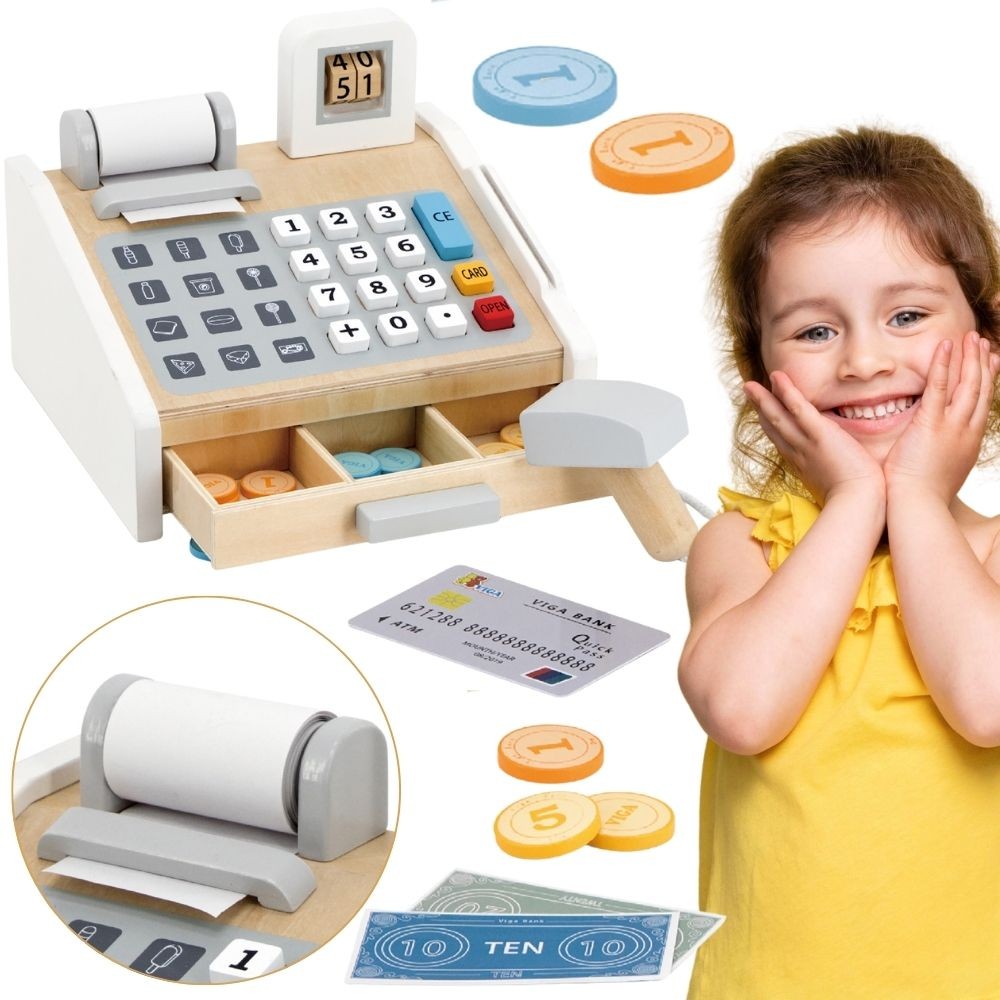 VIGA Drewniana Kasa sklepowa szaro biała