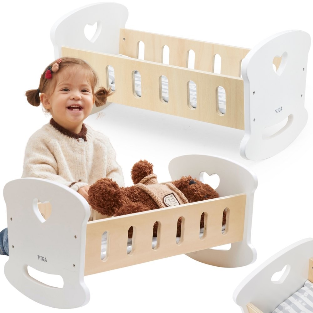 VIGA Drewniana Kołyska dla Lalek z Serduszkiem