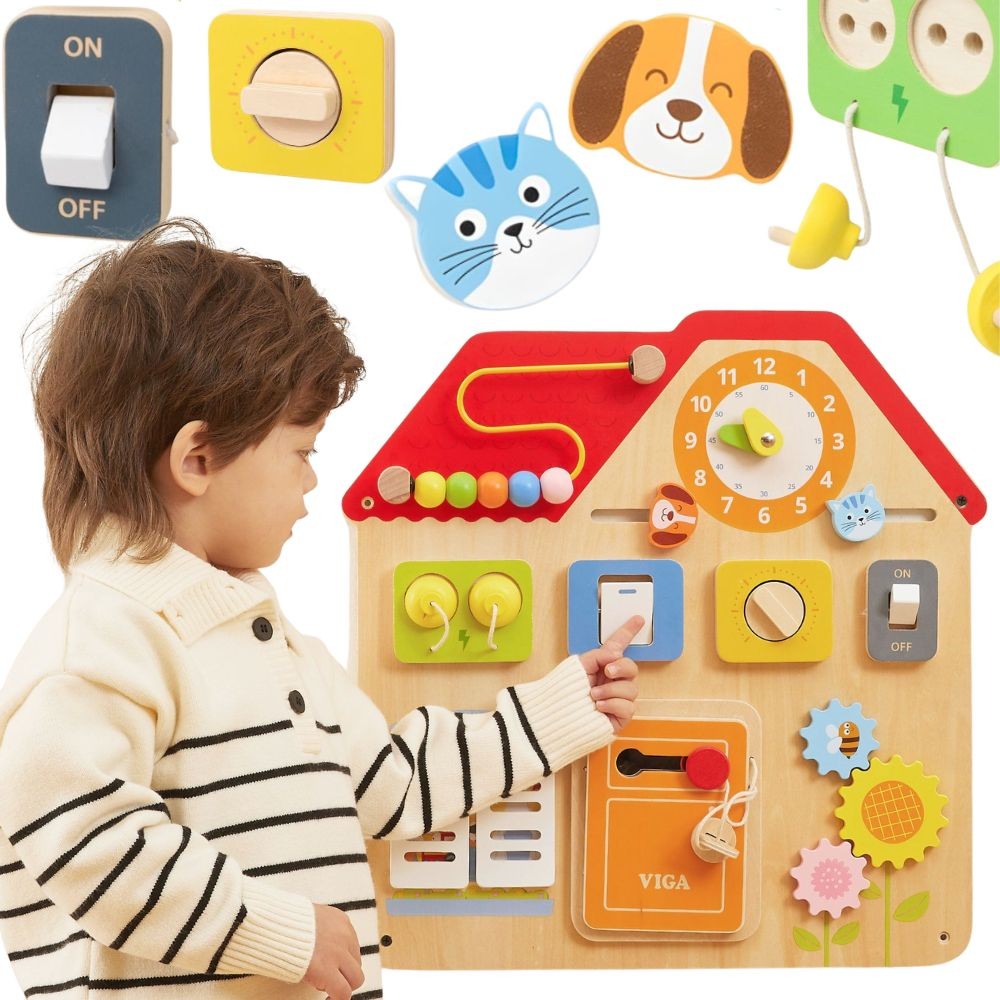 VIGA Drewniana Tablica Manipulacyjna Domek Odkrywania i Nauki