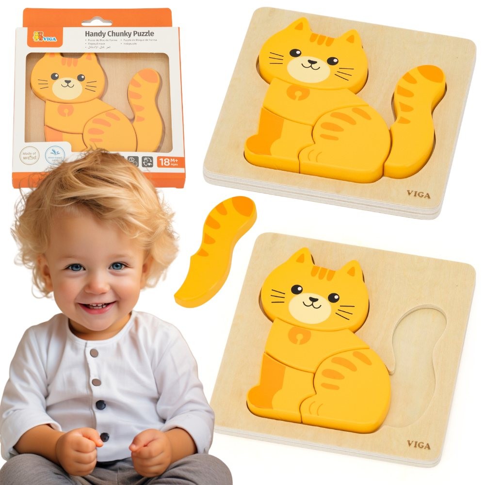 Odkryj magię nauki poprzez puzzle w kształcie rudego kotka od marki Viga, który zaprasza Twojego malucha do świata kształtów i kolorów! Ta wyjątkowa układanka została zaprojektowana specjalnie z myślą o małych rączkach, oferując idealne połączenie rozrywki z treningiem motoryki. Wyraziste, jasne barwy oraz przyjazny design natychmiast przyciągają uwagę dziecka, zachęcając do pierwszych samodzielnych sukcesów. Dzięki zaokrąglonym krawędziom i grubym elementom zabawa jest w pełni bezpieczna i niezwykle komfortowa. To idealny wybór na mądry prezent, który wspiera rozwój Twojej pociechy.
