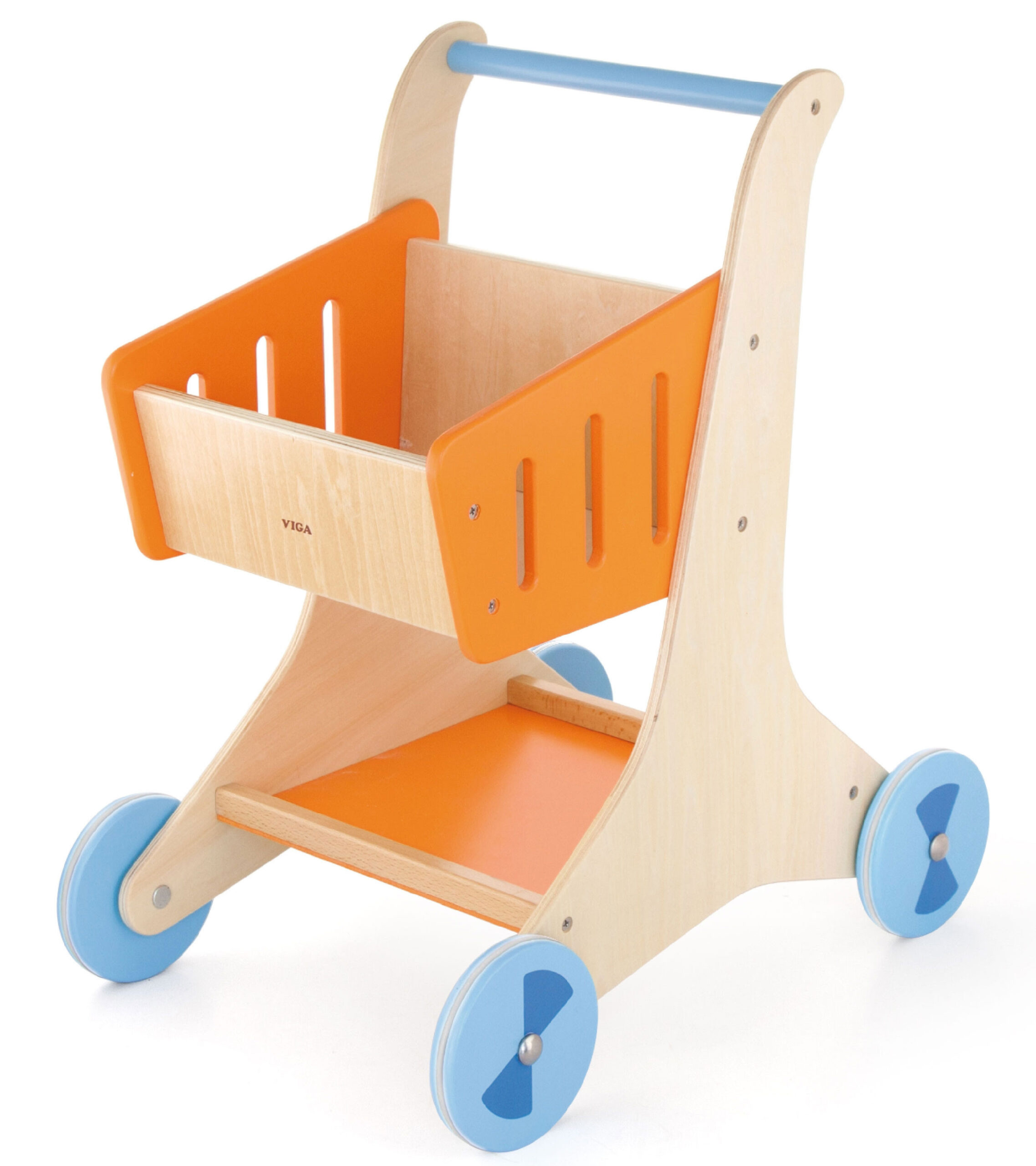 Drewniany wózek sklepowy od marki Viga to wyjątkowa zabawka, która zamieni dziecięcy pokój w prawdziwe centrum handlowe. Wykonany z wysokiej jakości drewna, wózek łączy w sobie trwałość i estetykę, oferując dzieciom bezpieczną przestrzeń do kreatywnej zabawy w sklep. Konstrukcja została zaprojektowana z myślą o najmłodszych użytkownikach – stabilna rączka ułatwia prowadzenie, a gumowe wykończenie kół zapewnia ciche poruszanie się i chroni domowe podłogi przed zarysowaniami. Wózek posiada pojemny, materiałowy koszyk oraz dodatkową dolną półkę, co pozwala na wygodne przewożenie „zakupów” lub ulubionych przytulanek.