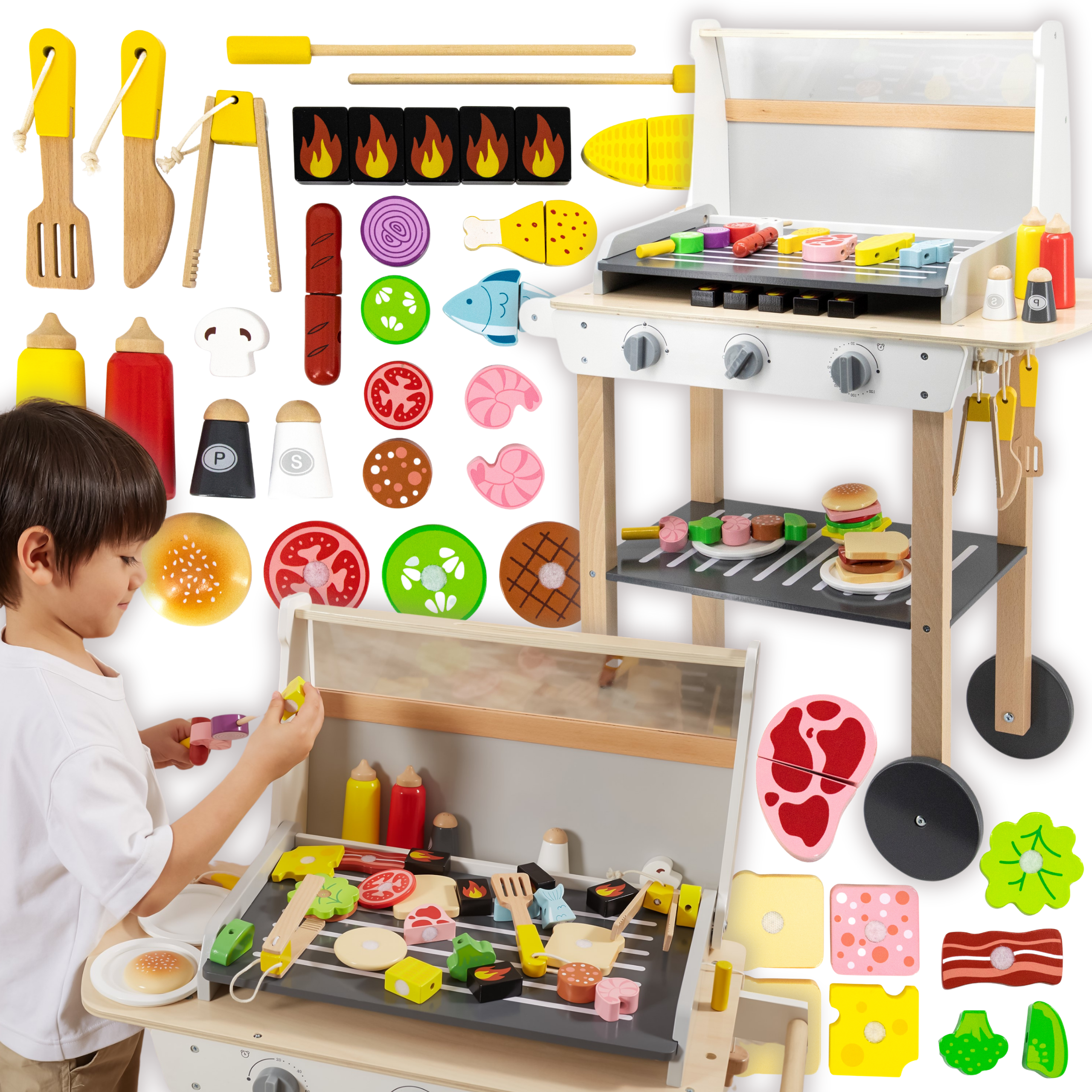 VIGA Duży Drewniany Grill dla Dzieci + 47 Akcesoriów