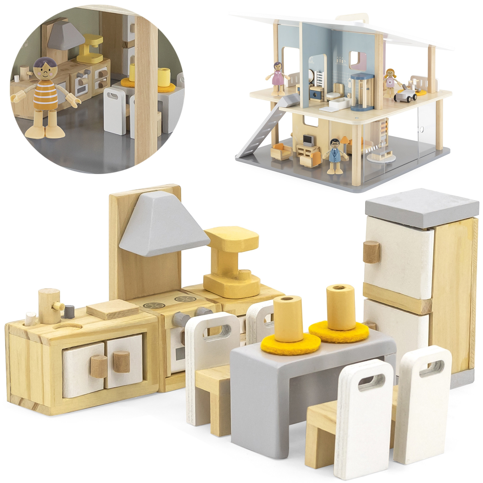 VIGA PolarB Zestaw Mebelków do Domku dla Lalek Kuchnia Jadalnia