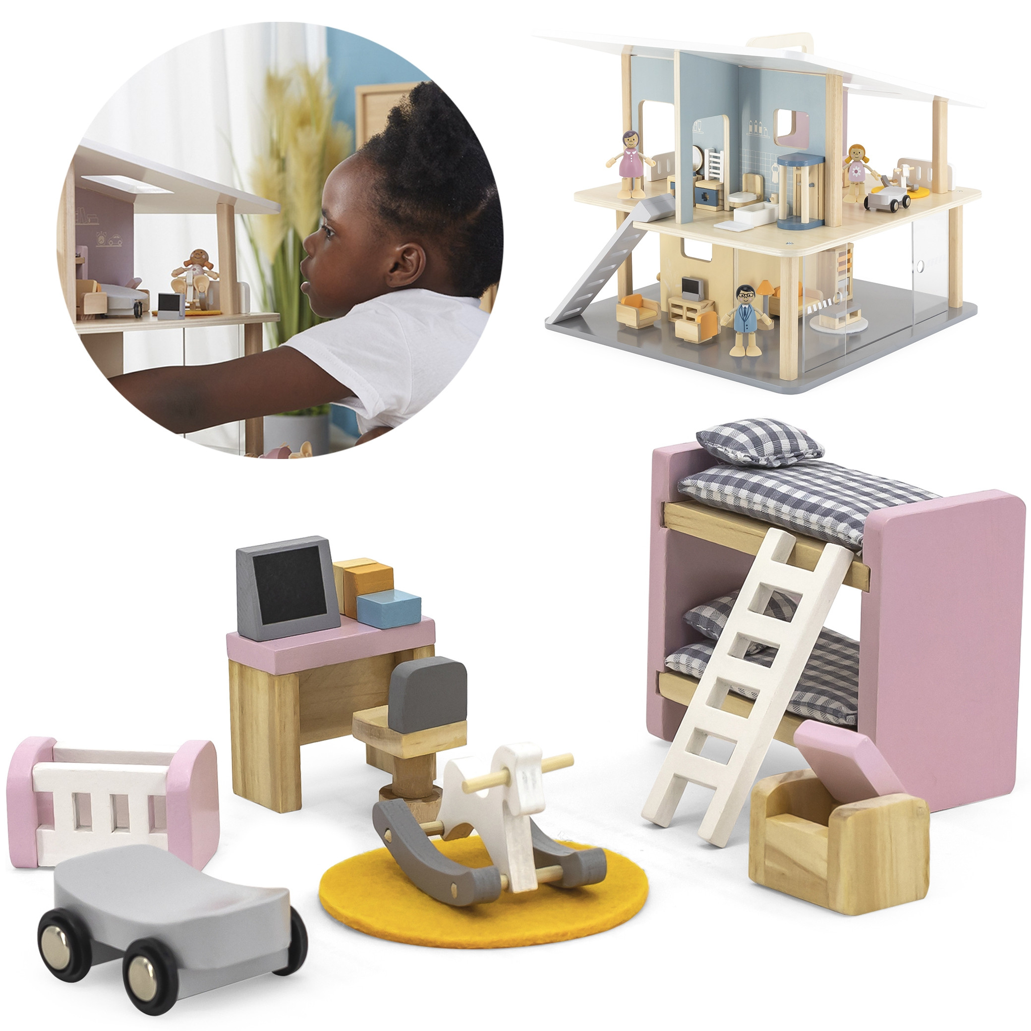 VIGA PolarB Zestaw Mebelków do Domku dla Lalek Pokój Dziecięcy
