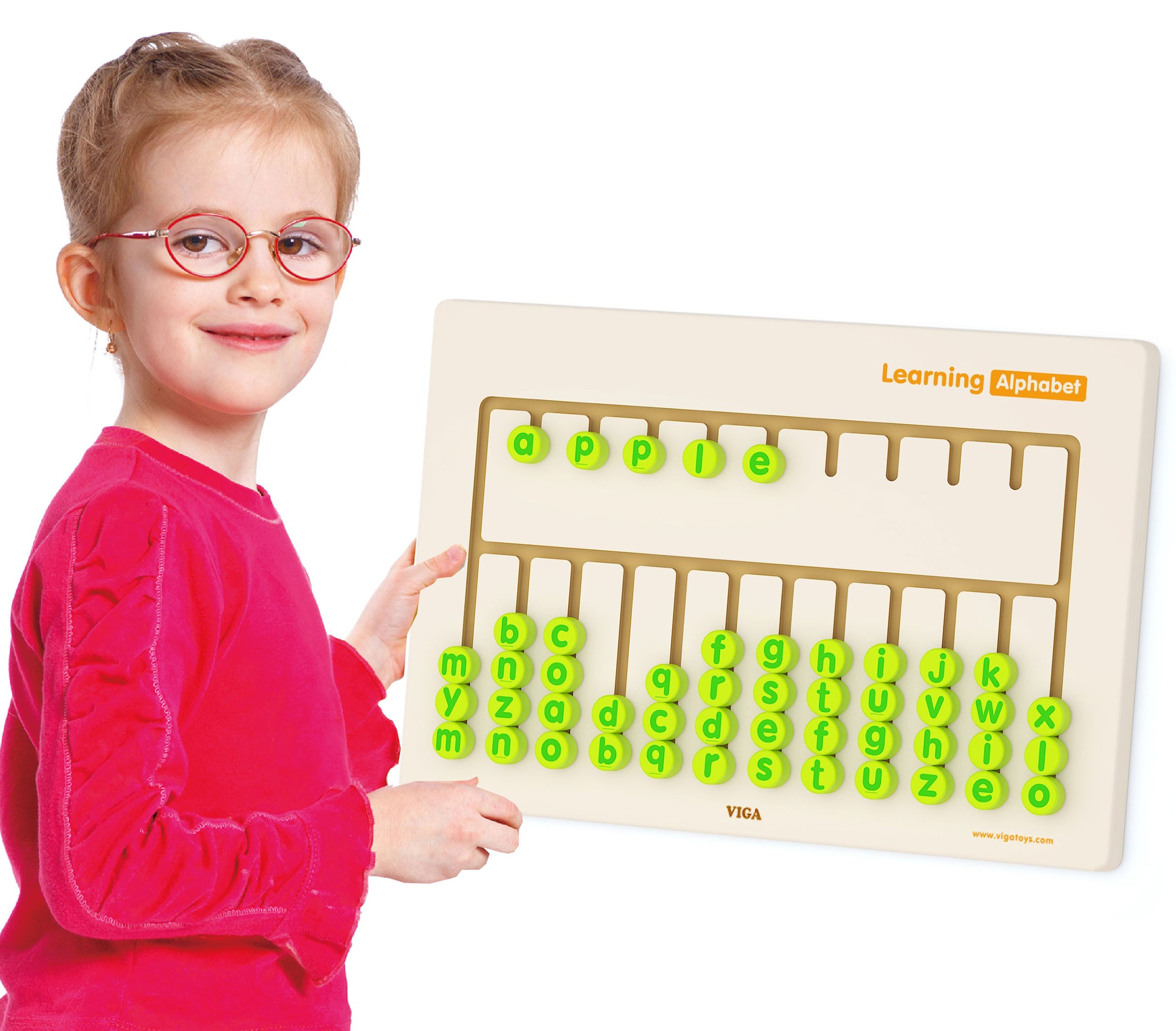 • – Pełny zestaw literek alfabetu, które dziecko może przesuwać i układać w słowa.