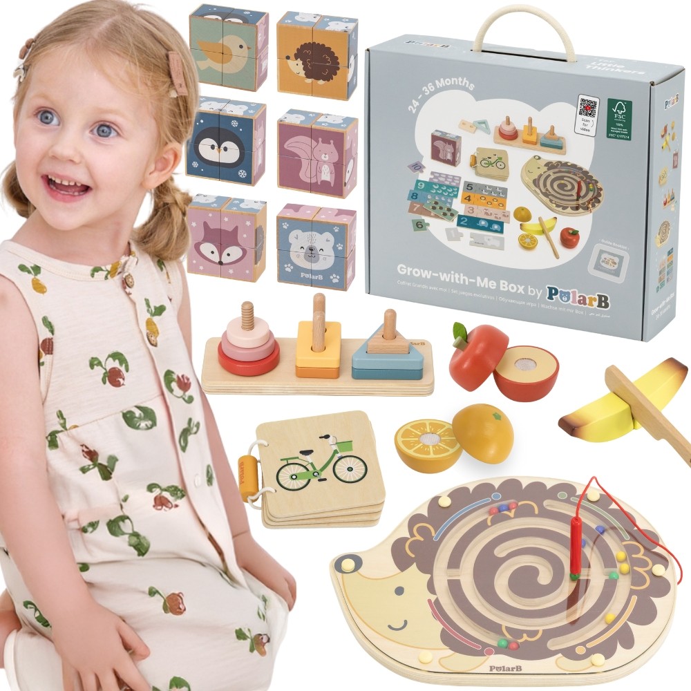Box dla dzieci 24m-36m od marki Viga, to zestaw edukacyjny, który dostarcza maluchom nowe wyzwania poznawcze w zakresie przestrzennego myślenia i rozpoznawania wzorów. Dzięki zabawkom zawartym w zestawie, dziecko może doskonalić precyzję ruchów, poznawać podstawy geometrii oraz rozwijać umiejętność rozwiązywania problemów. Idealny dla małych odkrywców, którzy są gotowi na bardziej zaawansowane zadania.