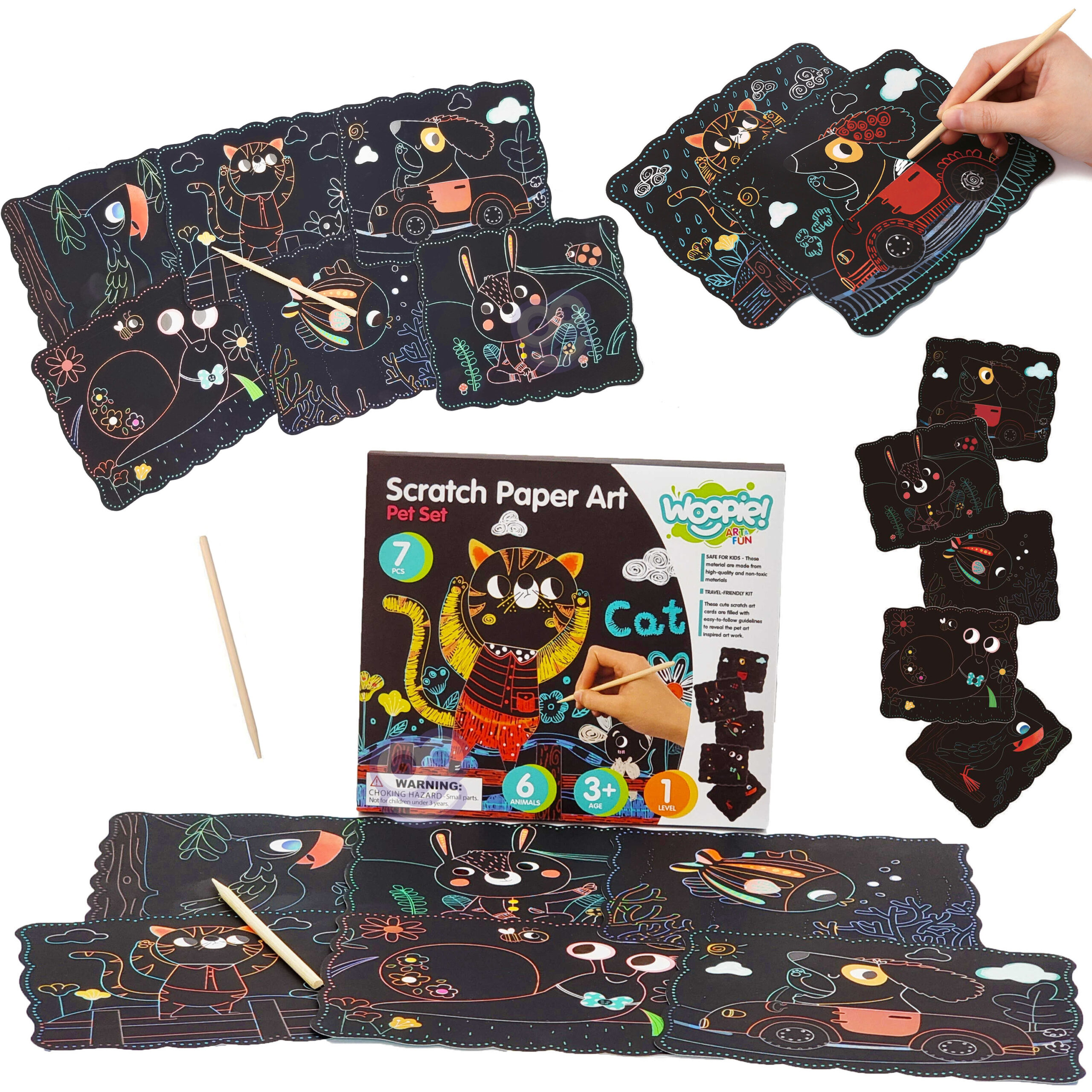 WOOPIE ART&FUN Zestaw Kreatywny Wydrapywanki dla Dzieci 7 el.