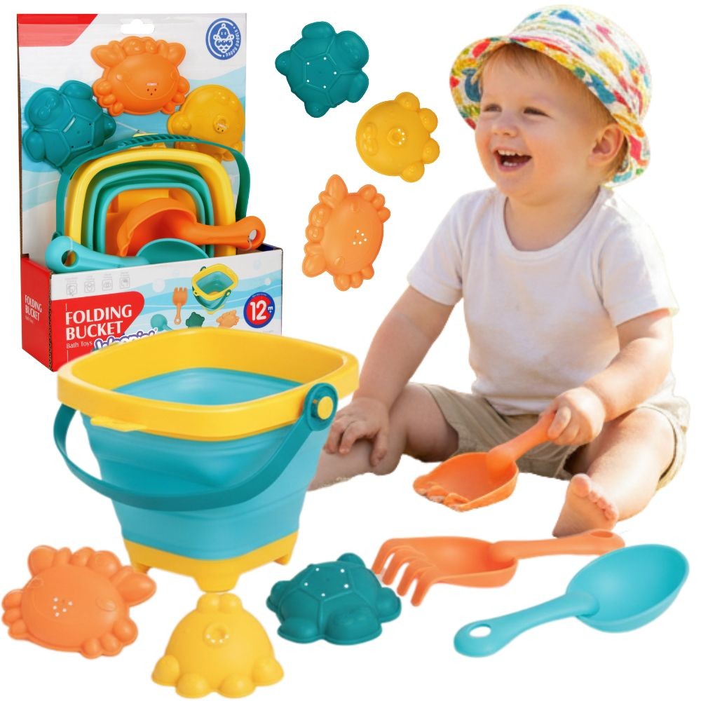 WOOPIE BABY Zestaw Wiaderko Składane z Grabkami Łopatką Foremki Niebieskie