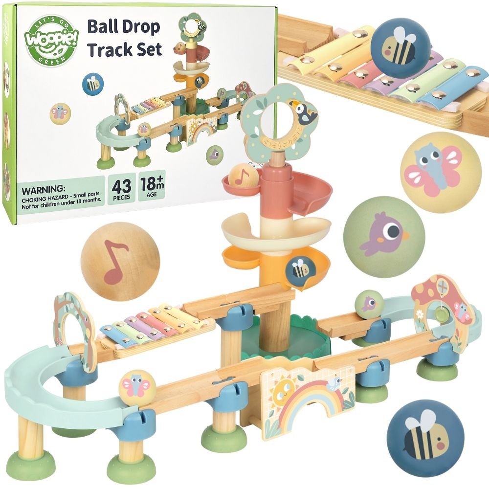 WOOPIE GREEN Drewniany Tor Kulkowy z Efektami Dźwiękowymi Cymbałki FSC