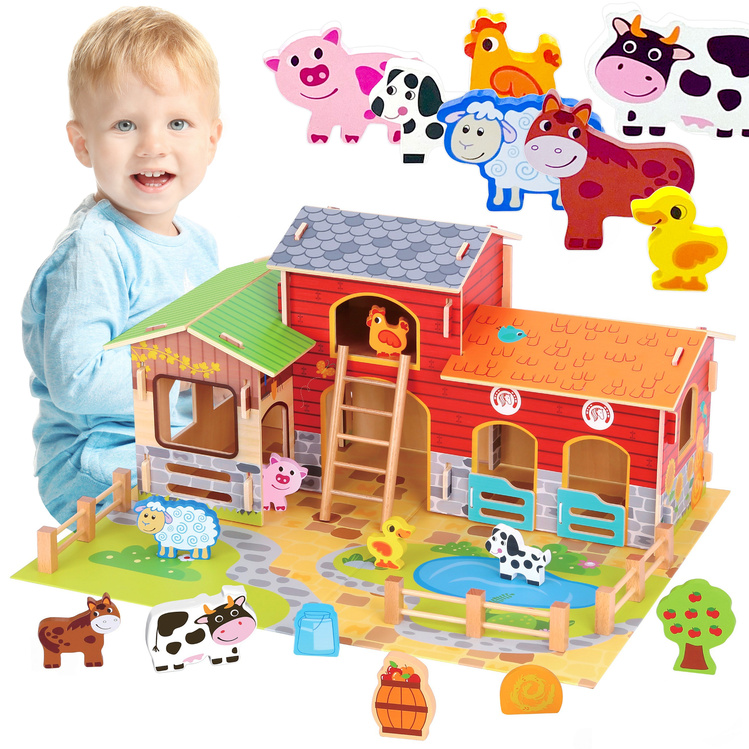 - – Plac z oczkiem wodnym, drzewko, sianko oraz inne akcesoria farmy.