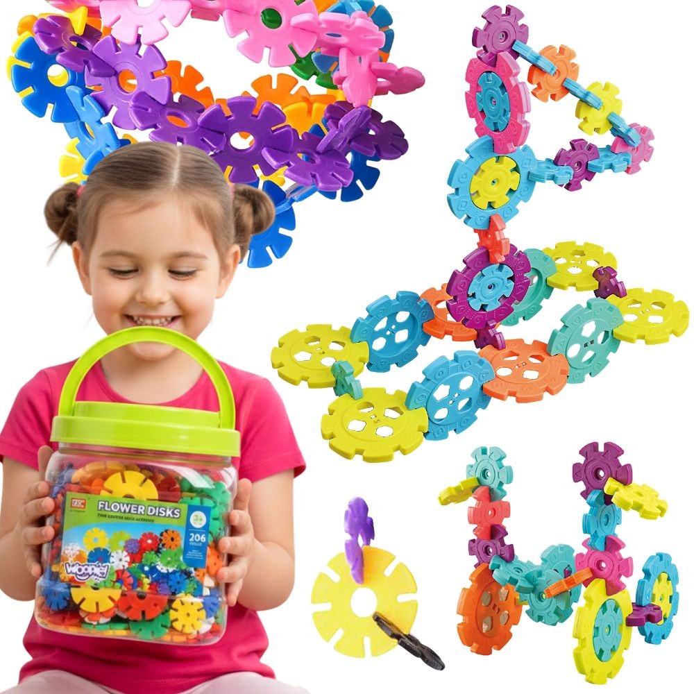 Klocki Konstrukcyjne Wafle od marki WOOPIE zwrócą uwagę i zafascynują Twoje dziecko. Kolorowe elementy przypominają wyglądem płatki śniegu. Klocki w bardzo łatwy sposób łączą się ze sobą, a ze względu na swoją budowę i sposób łączenia można z nich tworzyć ciekawe trójwymiarowe konstrukcje. Zastosowane otwory w śnieżynkach pozwalają na łączenie ich pod skosem, a nie tylko prostopadle. Zestaw zawiera 206 elementów zapakowanych w tubie. Samo budowanie konstrukcji rozwinie u dziecka logiczne myślenie, wyobraźnie, kreatywność oraz pomoże mu się skoncentrować podczas tworzenia . Przez układanie klocków dziecko poznaje kształty i kolory oraz ćwiczy zdolności manualne tzw. motorykę małą.