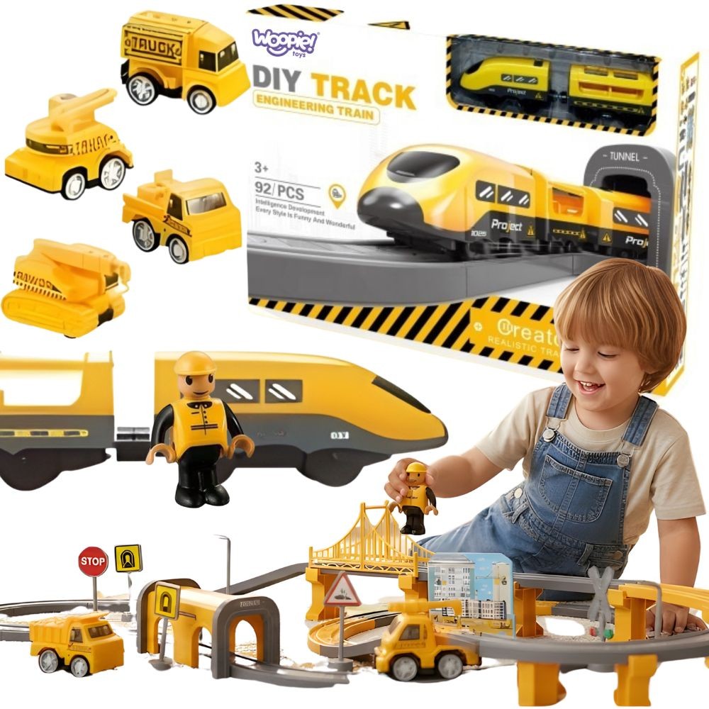 Fascynujący zestaw kolejki elektrycznej marki Woopie to prawdziwe centrum dowodzenia dla małych konstruktorów! Żółty pociąg ekspresowy z dźwiękami rzeczywistego pojazdu szynowego wprowadzi dziecko w świat budowy, planowania tras i tworzenia własnych scenariuszy zabawowych. Dzięki bogatemu wyposażeniu w mosty, tunele, sygnalizację świetlną i pojazdy budowlane, maluch może komponować nieograniczoną liczbę układów torowych, a następnie obserwować, jak pociąg mknie przez ich autorskie miasto. To zabawka, która łączy ekscytację prawdziwej kolei z kreatywnością dziecięcego świata