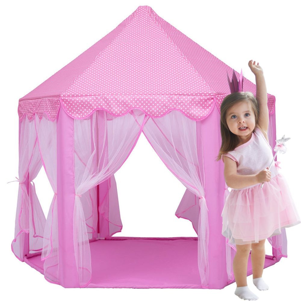 Ten uroczy różowy namiot pałacowy to idealne miejsce, gdzie Twoje dziecko będzie mogło przenieść się do świata bajkowych przygód, snuć fantastyczne opowieści i bawić się w królewskim stylu! Stworzony z dbałością o detale, stanie się sercem każdego pokoju dziecięcego.