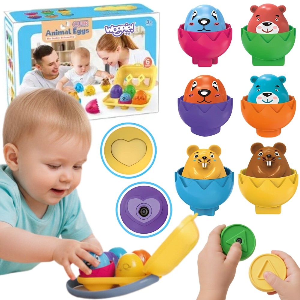 WOOPIE Układanka Sorter Montessori Dopasuj Kształty Wesołe Zwierzaki Jajka 6szt