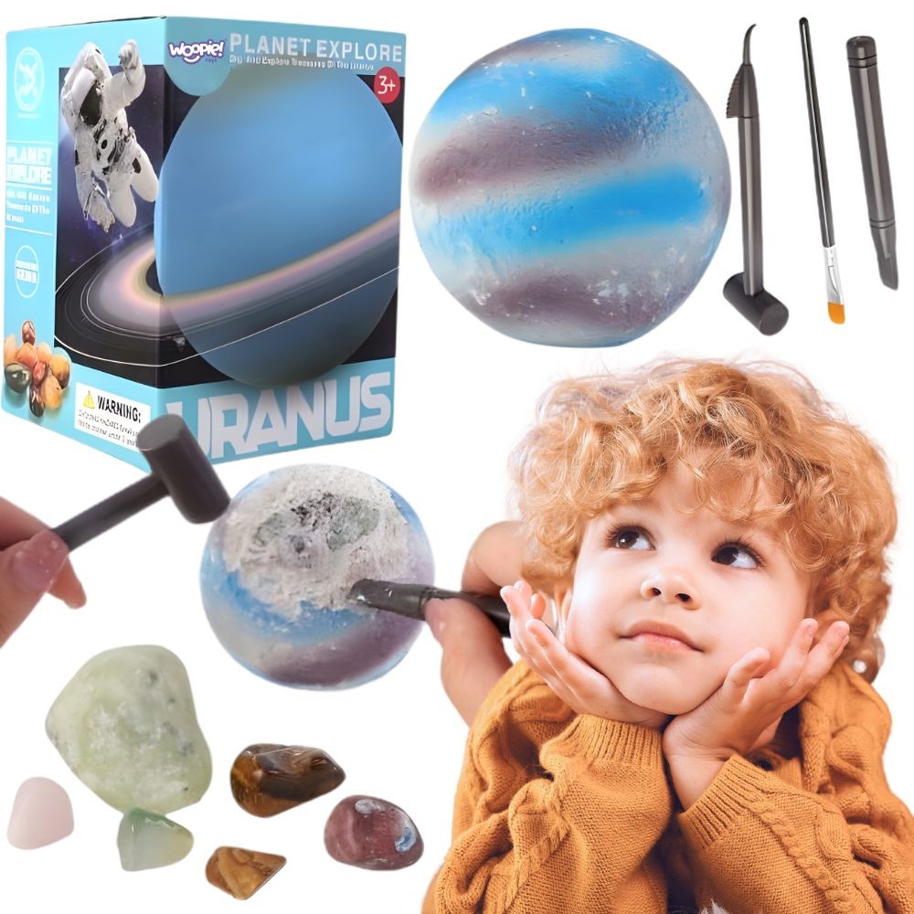 Przenieś się w fascynujący świat kosmosu i odkrywaj tajemnice planety Uran z zestawem wykopaliskowym marki Woopie! to edukacyjna zabawka, która pozwala dzieciom wcielić się w rolę małego odkrywcy i archeologa. Wykopuj ukryte minerały z modelu planety, korzystając z dołączonych narzędzi, i poznawaj niezwykłe kamienie z całego świata.
