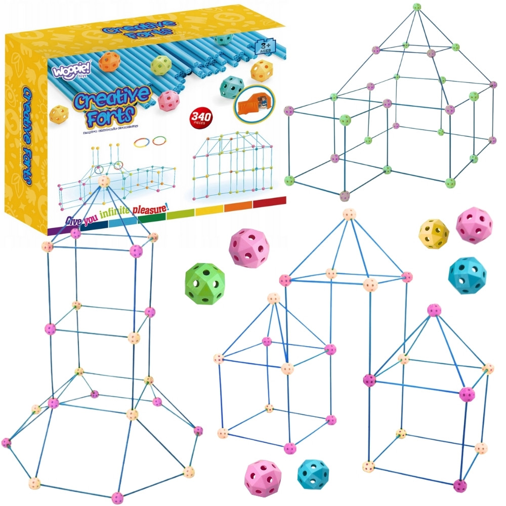 WOOPIE Zestaw Konstrukcyjny XXL Klocki do Budowania Namiotu Bazy Rurki Słomki 340 el.