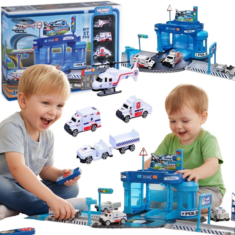 WOOPIE Zestaw Tematyczny Posterunek Policji na Lotnisku z Autami i Helikopterem 37el.